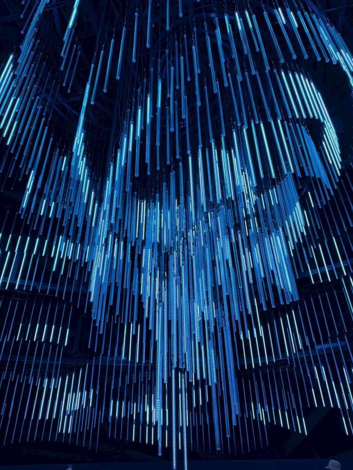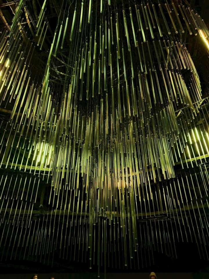館内に入るとまず目に飛び込んでくるのが、無数の光の棒(LEDチューブ) です。