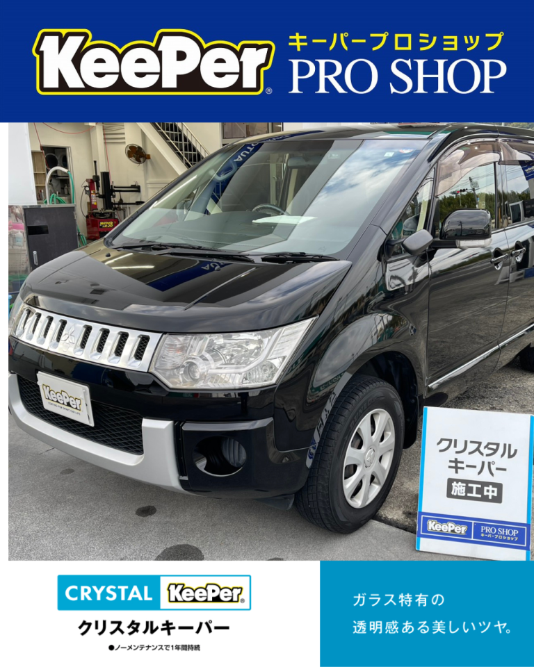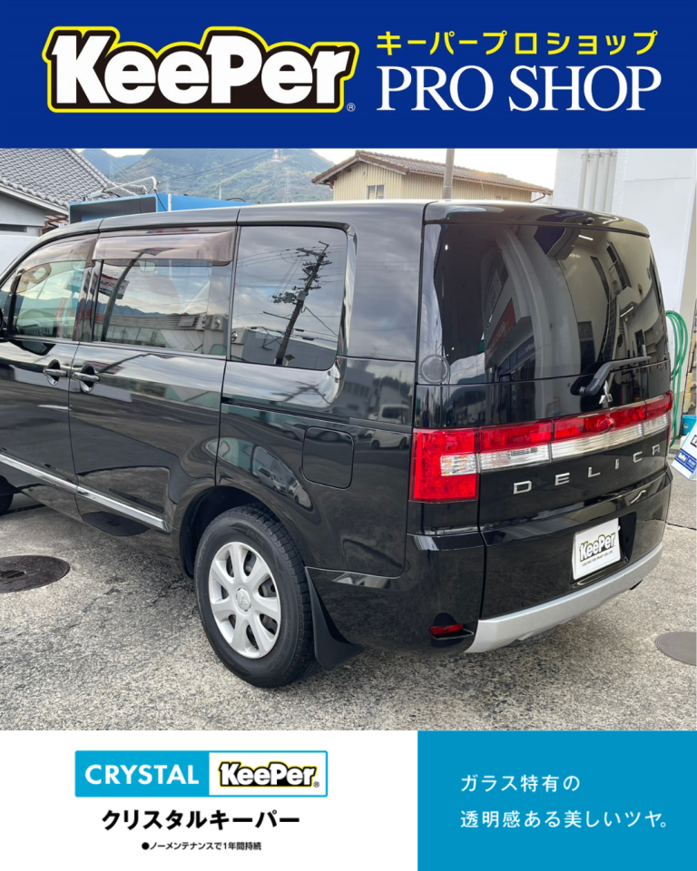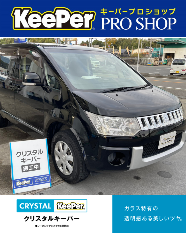 今回は三菱 デリカD:5に「クリスタルキーパー」「フッ素ガラスコーティング(全面)」「ヘッドライトクリーン&プロテクト」の3点施工をご依頼いただきました。