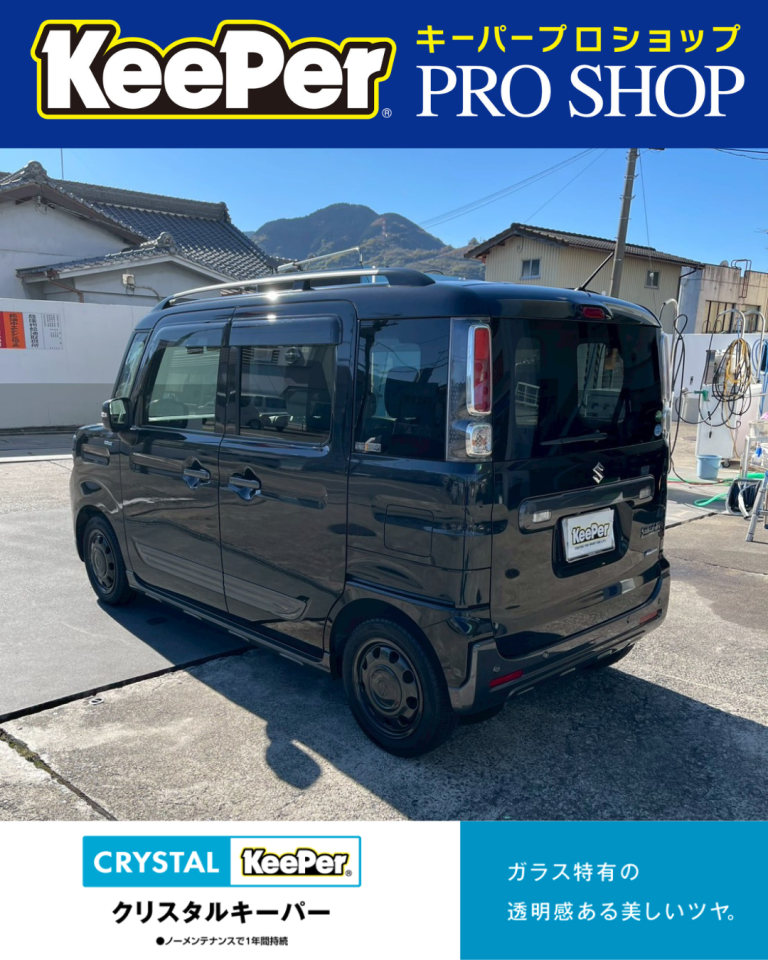今回は、スズキ・スペーシアギア(黒)にクリスタルキーパーを施工しました。