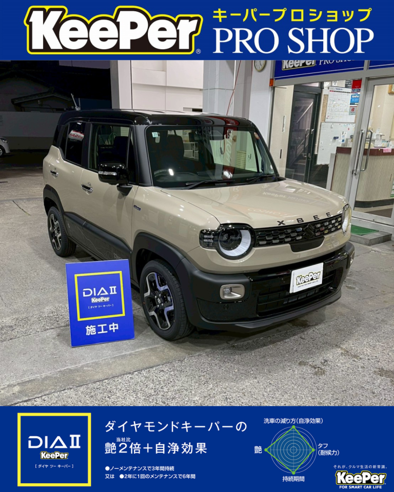 今回は スズキ クロスビー に ダイヤモンドキーパーⅡ プレミアム(ダイヤⅡプレミアム)を施工しました。